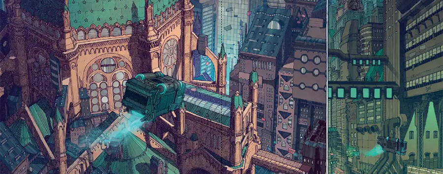 Największą siłą „Dystopolis” jest warstwa wizualna. Futurystyczne pojazdy, wielopiętrowe budynki i szczegółowe, rozbudowane plenery tworzą świat pełen osobliwego uroku, od którego trudno oderwać wzrok. Momentami ten bogaty w detale przestrzenny styl przywodzi na myśl prace Moebiusa, a estetyka przecinających powietrze pojazdów – „Piąty Element”.