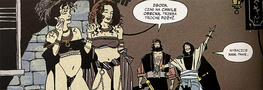Trzeba jednak przyznać – lektura nie jest łatwa. Chociaż sam koncept dwóch awanturników, których losy popychają kaprysy bóstw i tajemnicze siły, jest uroczy i pełen potencjału, to wykonanie momentami rozczarowuje. Brakuje spójności, a niektóre dialogi brzmią, jakby urwano je w połowie myśli. Zdarza się, że kluczowe wydarzenia rozgrywają się na marginesie uwagi – jak choćby epizod z gryzoniem, którego rola okazuje się istotna, mimo że jego obecność na planszy jest niemal niezauważalna. To nie są wady przekreślające lekturę, ale na pewno wymagające od czytelnika pewnej wyrozumiałości.