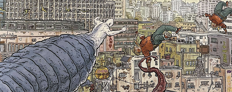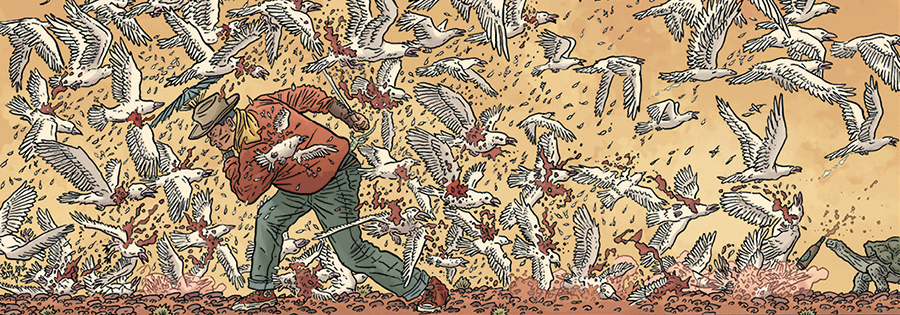 Komiks Darrowa wyróżnia absurdalna szczegółowość. Tych kadrów nie sposób po prostu „przewijać”, człowiek całkowicie się w nich zatraca. Chłonie te zatrzymane w czasie, pełne szczegółów i bezmiaru przestrzeni sekwencje. Podobnie jak „Matrix” rzucił świat na kolana „bullet timem”, Geof buduje cały album na efekcie zatrzymanej chwili.