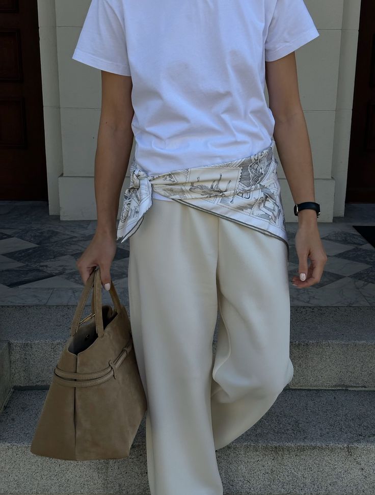 1. Apaszka! Apaszka, z którą możesz zrobić wszystko: założyć na szyję – po prostu, nonszalancko ją zawiązać albo wybrać jeden z instagramowych super sposobów, których ja nigdy nie jestem w stanie zapamiętać; założyć na głowę, jak pirat, tylko lepiej, przy okazji będzie cię chronić przed słońcem podczas wakacyjnych wycieczek; przewiązać przez biodra/talię, na białej, klasycznej koszuli albo basic t-shirtcie lub longsleevie (ostatnio sama spróbowałam tego sposobu i przepadłam!); zawiązać przy ulubionej torebce, koszyku czy plecionej siatce na zakupy, to będzie ciekawy, kolorowy detal, który zawsze będziesz mogła założyć na siebie w razie słońca lub wiatru; zamiast paska w trenczu (gdy ciągle jeszcze grają zimny maj), nieidealnie przewiązany, doda charakteru klasycznemu prochowcowi i podkreśli twój indywidualny styl, a o to przecież cały czas się rozchodzi. W kwiaty, wzory, koronkowa, gładka, wszystko zależy od ciebie. Ale pamiętaj – niezależenie jak będziesz nosić swoją apaszkę, wybieraj taką z naturalnych, przyjaznych dla skóry materiałów: wiskozy, jedwabiu, bawełny czy lnu. Babcie mają takie perełki, uwierz mi. Vintage shopy też.