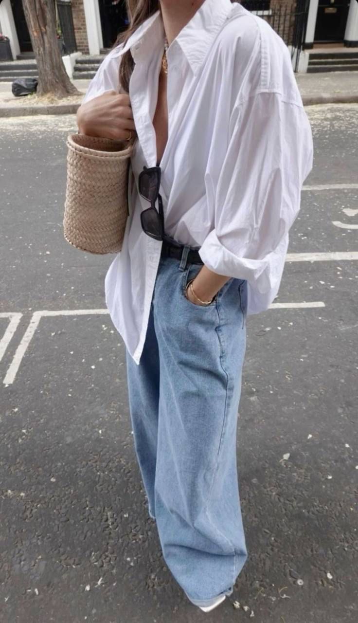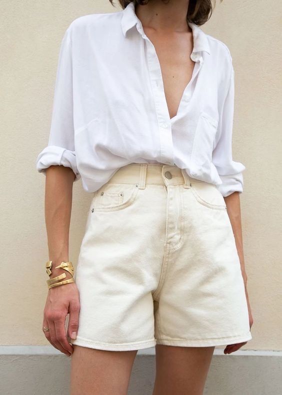 3. Biała koszula, bawełniana lub lniana, która będzie pasować do każdego letniego looku, niezależnie, od tego czy będziesz zwiedzać, wybierzesz się na kawę z kumpelą wolnym popołudniem czy spóźniona/y pobiegniesz do pracy, sprawdzi się w każdej sytuacji i jest to prawda, którą znały również nasze matki i babki. Do szortów, do spódniczko-szortów, satynowej spódnicy, do jeansów, na strój kąpielowy, z samym paskiem jak Carrie Bradshaw, jak wam się tylko podoba! Jeśli brakuje wam takiej koszuli, poszperajcie w szafie mamy, może wpadnie wam w ręce jakiś okaz z lat 90.? Z koronkowym kołnierzem w stylu marki Chylak albo z przełomu 90s/00s, dopasowana i taliowana? Taka idealnie zagra z jeansami i balerinami.