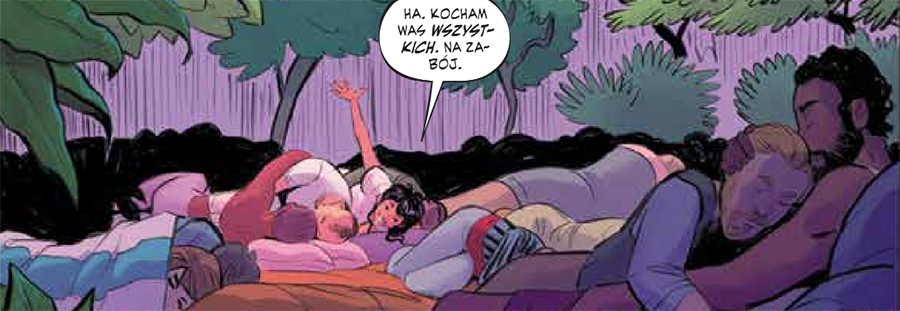 Jason Aaron, znany m.in. z genialnego „Skalpa”, świetnego „Thora” i „Thanosa”, a także naprawdę dobrych „Conanów”, sięga po postapokalipsę, prezentując ją w dość nietypowy sposób. W świetnym otwarciu przedstawił parę wyjątkowych osób, które, mimo dzielących je różnic, zakochują się w sobie bez opamiętania. Zarówno bohaterowie, jak i postacie poboczne mają w sobie potężny magnetyzm.