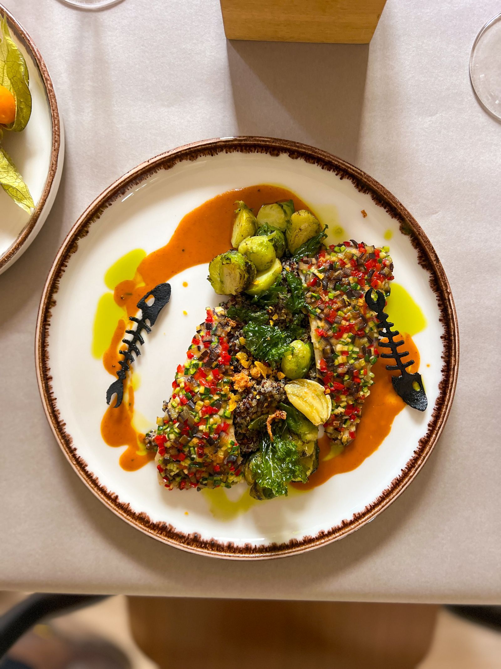 i orzechami. W roli głównej – wołowe ossobuco z pieczoną marchewką, polentą z truflą i sosem szałwiowym lub w wersji wegetariańskiej fiore di carcofi, czyli nadziewane pierożki z farszem z karczochów i parmezanu, podawane na sosie marinara. Na deser –panna cotta z figami i białą czekoladą lub babà au rum z kremem waniliowym.