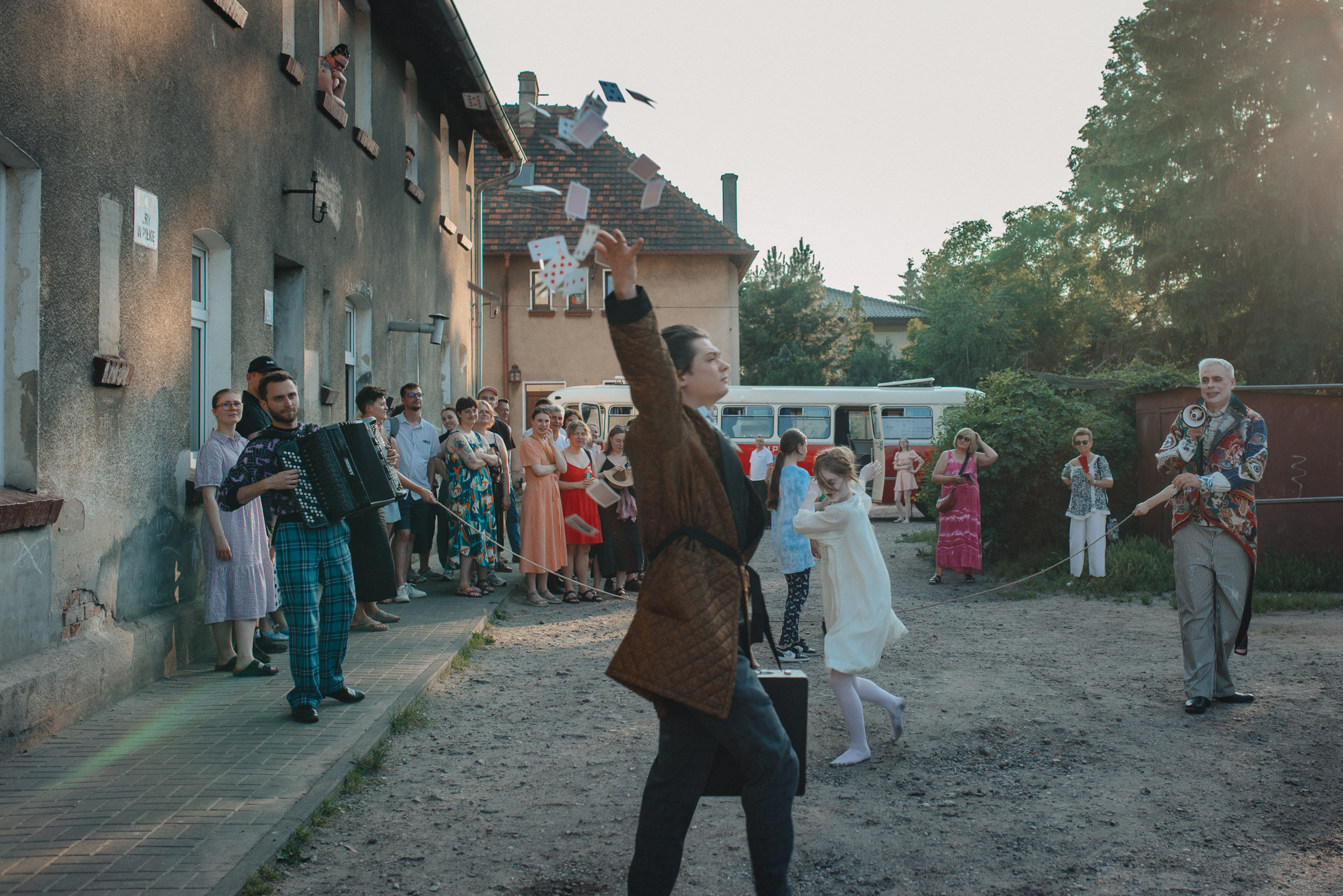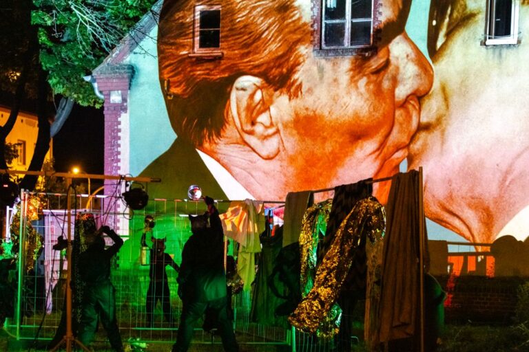 Jeśli „Glutendorf” był powrotem do przeszłości i opowieścią o tym, co łączy, to „Domek wałmistrza. Remix” był wejściem w głąb tego, co dzieli. Spektakl, wychodząc od historii wałmistrza i zwracając uwagę na los zabytku, stawiał pytania o współczesne linie podziałów i granic – zarówno w wymiarze lokalnym, dotyczącym dzielnicy Główna, jak i w szerszej perspektywie. Było to widowisko plenerowe, rozgrywające się na podwórku przy ul. Głównej 74, czyli tuż przy „domku wałmistrza”. – Dom wałmistrza był domem, który swoimi murami chronił człowieka, który chronił coś, co dzieli człowieka od człowieka” – komentuje Karol Bijata, zwracając uwagę na sprzeczność, jaka kryje się w tym miejscu.