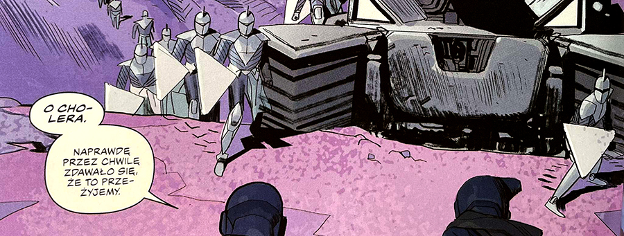 Pomimo drobnych rozczarowań, album wciąż broni się dynamiczną akcją, dobrze poprowadzonym tempem i umiejętnym podsycaniem ciekawości wobec przyszłości całego uniwersum. Wprowadzenie na plan zdarzeń ikonicznego Transformersa to świetny moment, który pozwala wierzyć, że prawdziwe emocje dopiero przed nami. Czuć też, że scenarzysta bawi się konwencją space opery, podsuwając czytelnikom kolejne fragmenty tej międzygalaktycznej układanki.