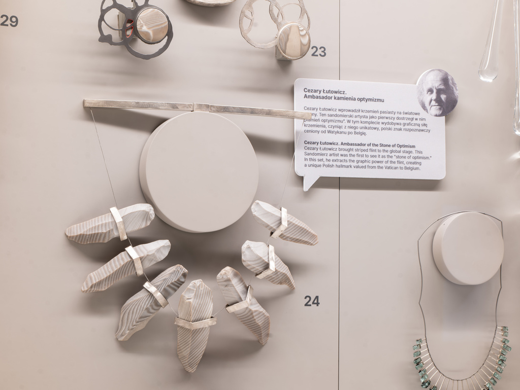 Prezentacja polskiej szkoły srebra i rzemiosła tworzonego od 1945 roku. Punktem wyjścia jest twórczość Leny Kowalewicz-Wegner, prekursorki polskiej sztuki złotniczej. Zwiedzający zobaczą tu m.in. bogaty zbiór biżuterii z okresu PRL, formalistyczne realizacje twórców indywidualnych oraz bogata kolekcję prac gromadzonych niegdyś przez prof. Irenę Huml.
